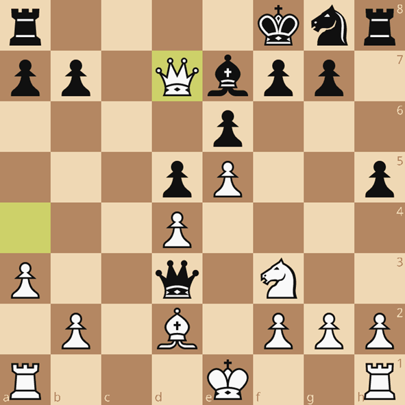 Het definitieve kantelpunt in de partij. De engine geeft een geraffineerde manier om die koningsvleugel tot leven te wekken, ten koste van een pion weliswaar: 17…Ph6 18.Tc1 g5 19.Lxg5 De4+! 20.Le3 Pf5 en het oogt alweer wat frisser. Hans Spoelstra kwam echter met 17…Da6? 18.Tc1 Td8 19.Tc8 Db6. Nu is de druk van de ketel, en de h1-toren besliste op c7 de partij. 20.Lb4! Deze zet komt alleen in het verslag omdat het de enige niet-nummer-1-zet was volgens de Lichess app van Boris. De evaluatie ging echter van +5 naar +6, wat Boris de uitspraak ontlokte: “Ik heb de engine verslagen!”. Niet slecht, voor een invaller.