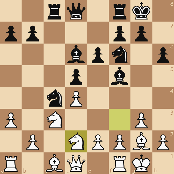 Zo drastisch was absoluut niet nodig, aangewezen was 11…0-0. Een zet die de familie Ekkelboom uit principe zo veel mogelijk vermijdt dus dan moet je wat.
