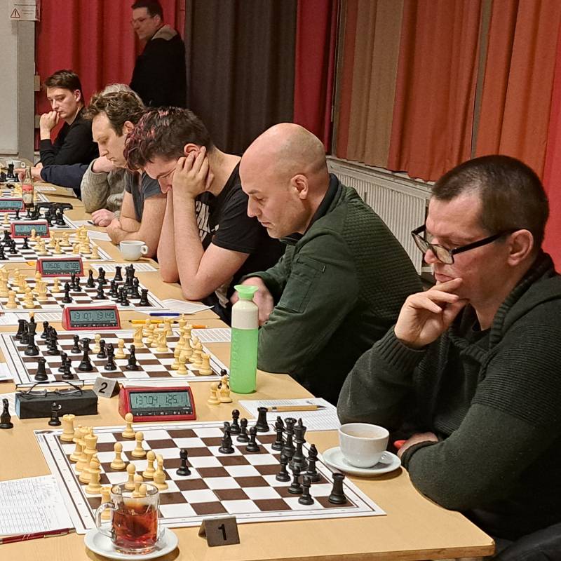 Als je niet kunt winnen, dan moet je zorgen dat je niet verliest. Het vooruitzicht om nog 50 keer die hand boven tafel te hijsen, een zet te doen, de klok in te drukken en die zet dan ook nog op een leesbare manier op het blaadje te noteren was ineens niet zo heel aanlokkelijk. Daarom maar een fraaie plusremise genoteerd met de zwarte stukken.