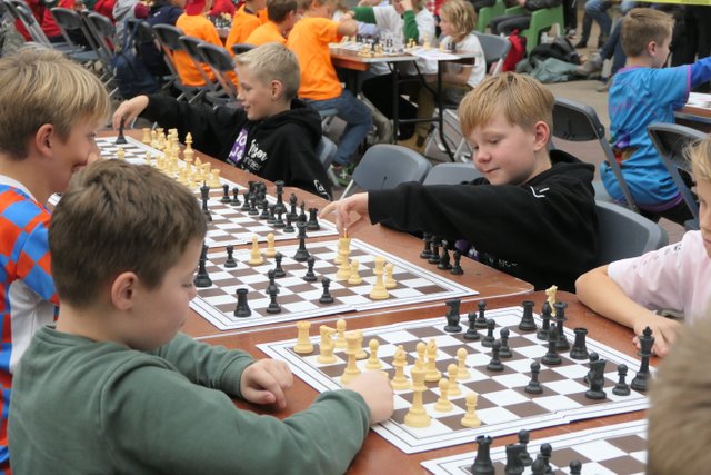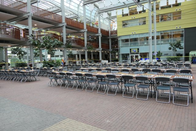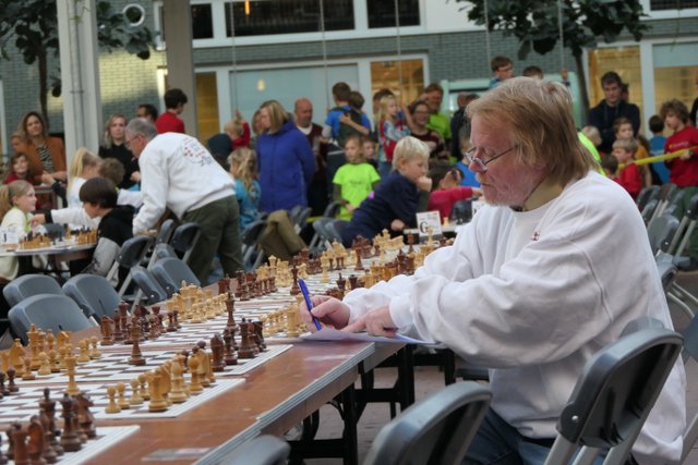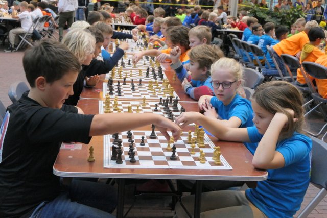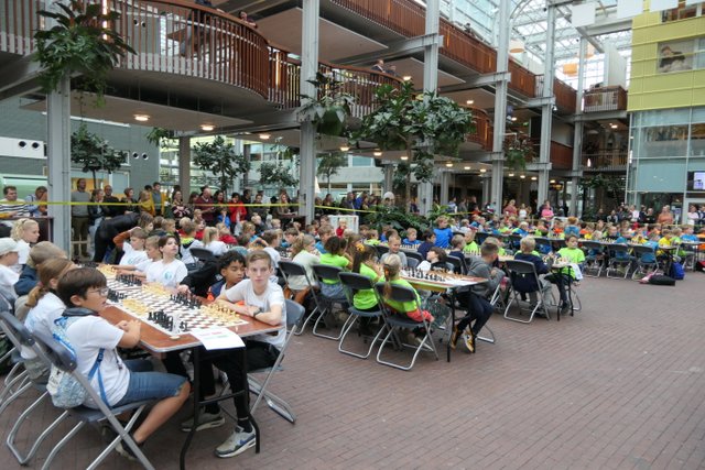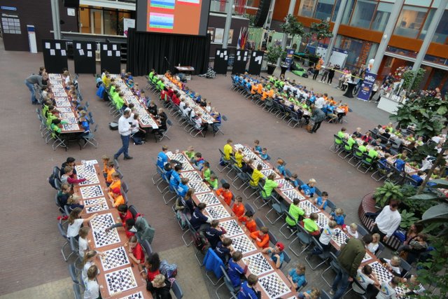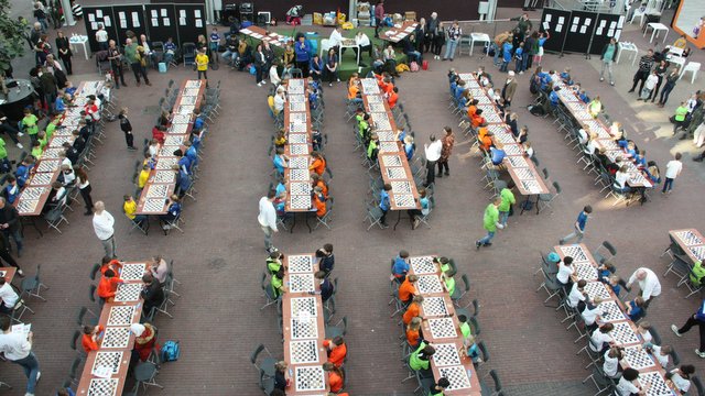 Het Zwols Schaakgenootschap had in de ochtend met hulp van Studenten van de opleiding Facilitair Management aan het Deltion College 126 schaakborden in de schaakarena klaargezet.