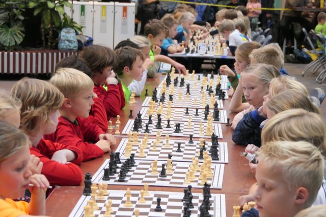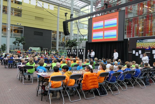 265 kinderen van Zwolse basisscholen spelen in een team van 4 spelers tegen de andere teams in de poule. Er zijn 5 ronden