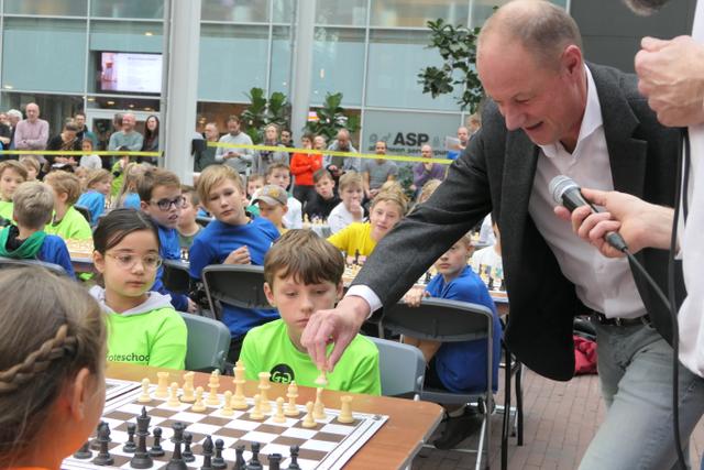 opent de Beleidsmedewerker Sport van gemeente Zwolle het toernooi door de eerste zet te spelen.