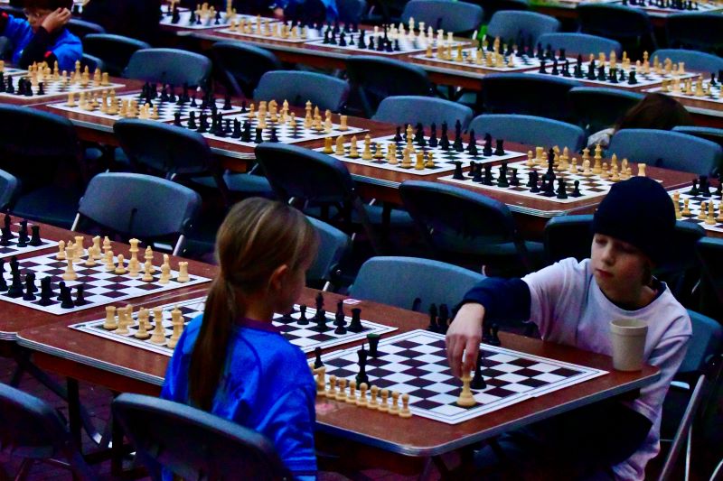 Iedereen zit om 14:00 uur klaar achter het schaakbord voor de eerste ronde.
