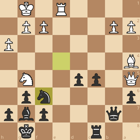 Een van de meevallers kwam op het bord van Albert. Tegenstander had al wat makkelijkere kansen laten liggen. Hier kan het voor wit nog steeds goed komen, al moet je dan 50.Th3 vinden: 50…fxg2 51.Tg3+ Kf6 52.Df8+ Ke5 53.Te3+ en ergens onderweg moet zwart de dame voor de toren geven én staat het ook nog zo onhandig dat je niet heel makkelijk een fort bouwt. Niet allemaal uit te rekenen als je op increment leeft natuurlijk, al is de zet Th3 wel vindbaar. Na 50.Dxe6?? is het uit aan de andere kant: 50… Df4+ 51.Kg1 Td1+ 52.Lf1 Dg4+ 53.Kh2 Dh5+ 54.Lh3 Th1+! 0-1