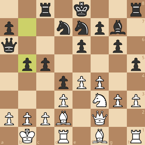 Ik denk niet dat Andries hier aan +0.3 dacht, en ik evenmin toen ik er naar zat te kijken. De engine speelt ijskoud Lg2 en beweert dat de zwarte lawine niet tot rollen komt, tja. Andries had haast, en dat is begrijpelijk. 17.f5!? gxf5 18.Le2 Pf6 19.Pg5 fxe4 20.dxe4 e5. Het voelt niet logisch om de loper op g7 te blokken, en kijk nou, de engine is het een keertje met me eens. Er hangt natuurlijk Pxf7 en e5 in de lucht, dat kun je ook dekken met 20…Pg6.