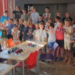 Op 4 juni was het toernooi voor de jongste leeftijdscategorie, namelijk met schakers uit groep 3 t/m 6. Met enkele wisselspelers in de 32 teams deden er in totaal 141 deelnemers mee.